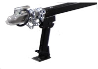 This is an adjustable in height jack stand up to 12". It is steel and powder coated black and folds back/under your 2" trailer tongue and bolts on.